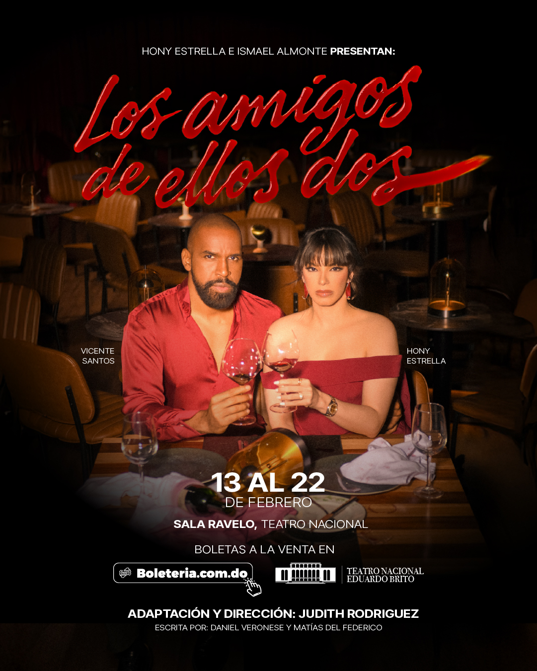 Sala Carlos Piantini, TNEB Av. Máximo Gómez #35, Plaza de la Cultura, Gazcue, Santo Domingo, República DominicanaWilliam Arana (fundador del Ministerio Roka y la voz de las dosis diarias) junto a su esposa Martha Ginneth (actriz, directora y voz comercial), recrean de una manera divertida e interesante en el escenario, a través de un formato de comedia corta, el diario vivir de muchas parejas, en la intimidad de su hogar, sacando...