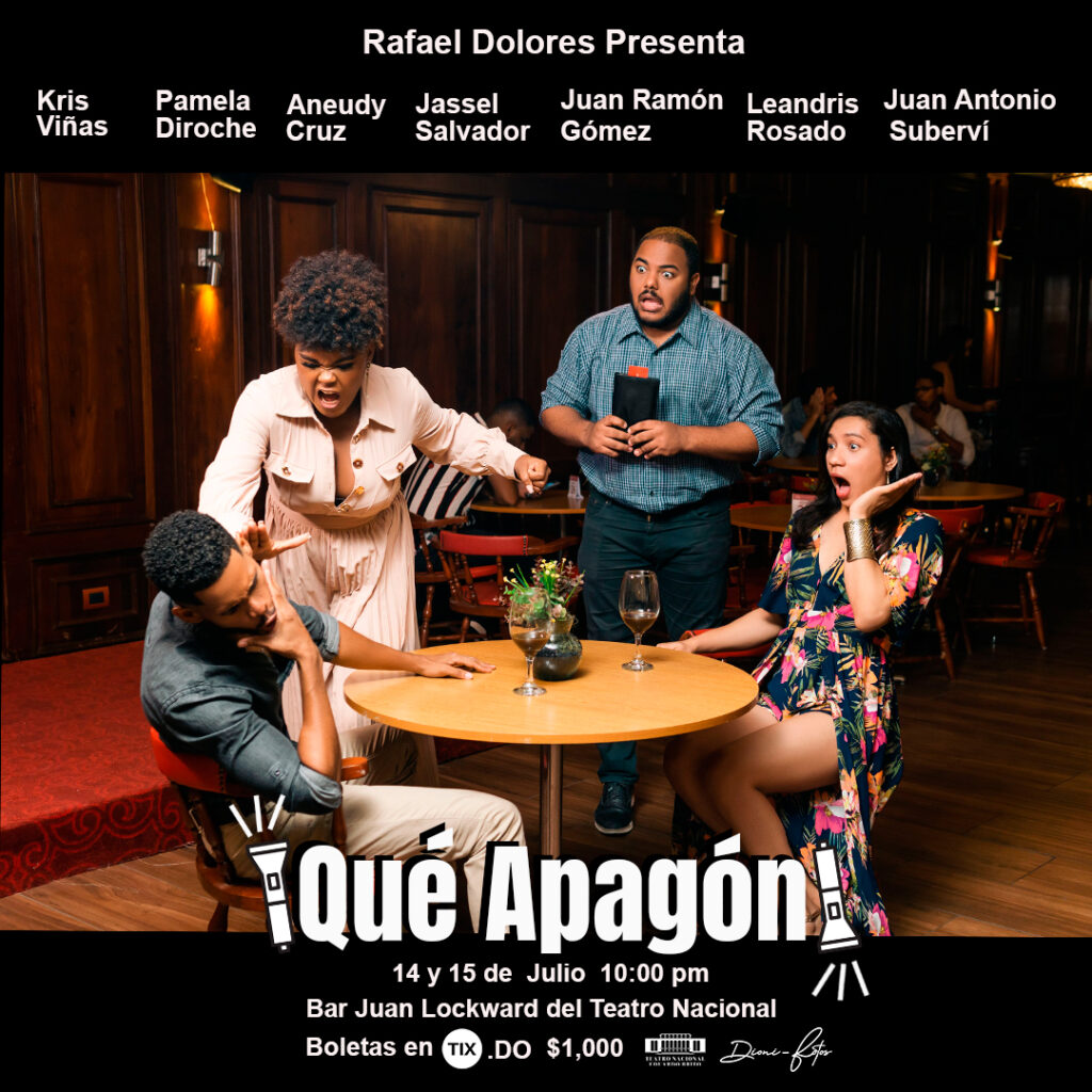 El elenco de la obra «¡Que Apagón!» incluye a Kris Viñas, Pamela Diroche, Aneudy Cruz, Jassel Salvador, Juan Ramón Gómez, Leandris Rosado y Juan Antonio Suberví. Esta obra ha sido coescrita por Rafael Dolores y José Gregorio Rodríguez.
