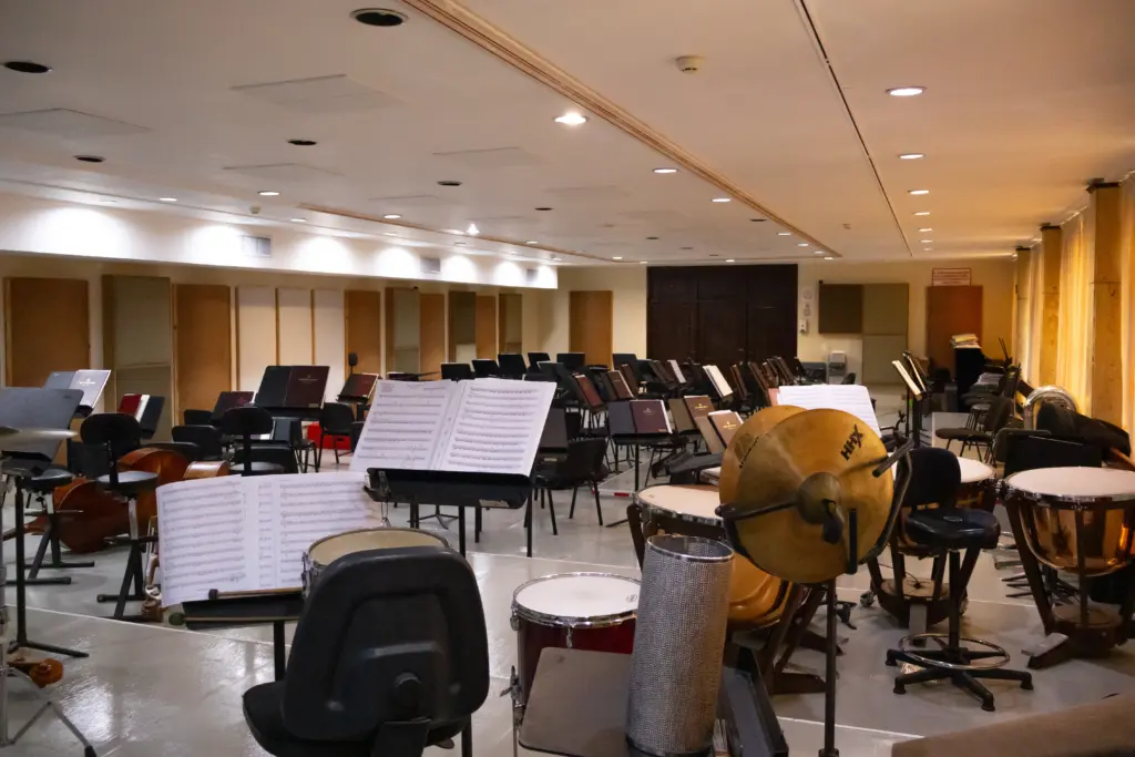 La sala de ensayos Jacinto Gimbernard es un espacio que cuenta con el equipamiento y tratamiento acústico, propio de las salas de ensayo de las grandes orquestas profesionales a nivel mundial, a cargo de los más notables expertos ingenieros acústicos de nuestro país. Esta sala tiene paneles acústicos que cuentan con trampas de bajo, difusores de 6’ x 3’ , y paneles de absorción. Además, de un entarimado para las familias de vientos y percusión. Así como también, dos unidades de aire acondicionado de 24 toneladas, mobiliario propio de una orquesta sinfónica, tales como sillas y atriles, además de gruesas cortinas que recubren los amplios ventanales.